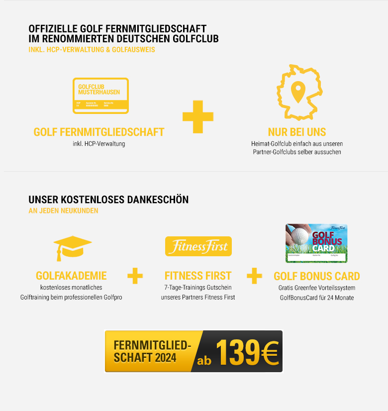 - Sie werden über uns offizielles Fernmitglied in einem dem deutschen Golfverband angeschlossenen Golfclub
